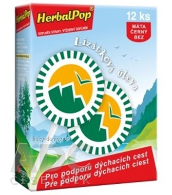 Výživový doplnok, HerbalPop® vo forme roksových lízaniek s obsahom rastlinných extraktov (Šalvia lekárska, Bedrovník anízový, Skorocel kopijovitý, Čierna baza, Medovka lekárska, Mäta).