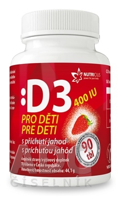NUTRICIUS Vitamín D3 pre deti 400 IU s príchuťou jahôd tbl 1x90 ks
